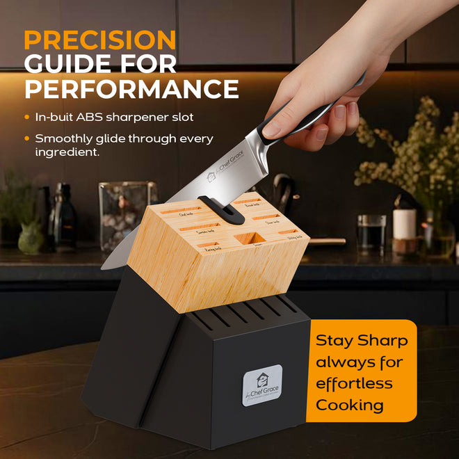 - Eco-Friendly and Sustainable: The knife set features a sustainable design, aligning with eco-conscious consumers' values, making it an excellent choice for those seeking a responsible kitchen essential.