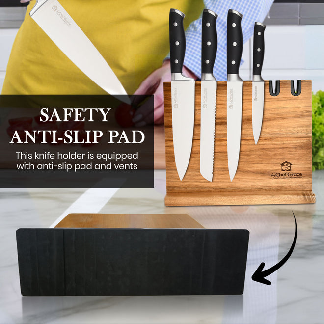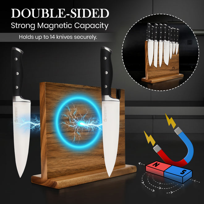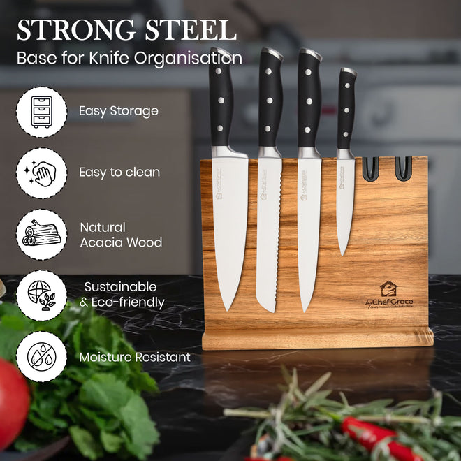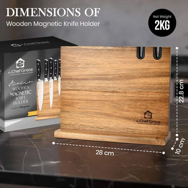 Acacia Wood Magnetic Knife Holder + Sharpener.