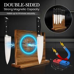 - Double-Sided Strong Magnetic Capacity – ByChef Grace ‘Ultra large capacity’ Magnetic knife holder can hold up to 14pcs kitchen knives. It’s built-in strength magnet technology grips a variety of kitchen knives and holds securely.